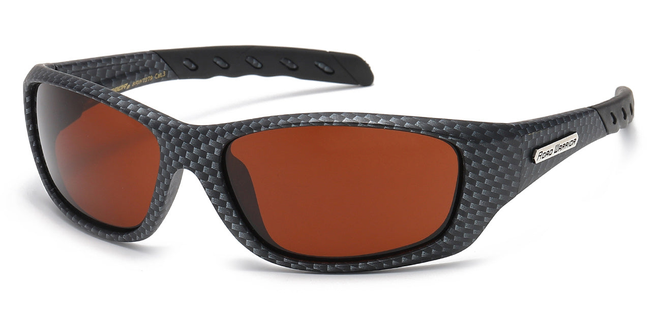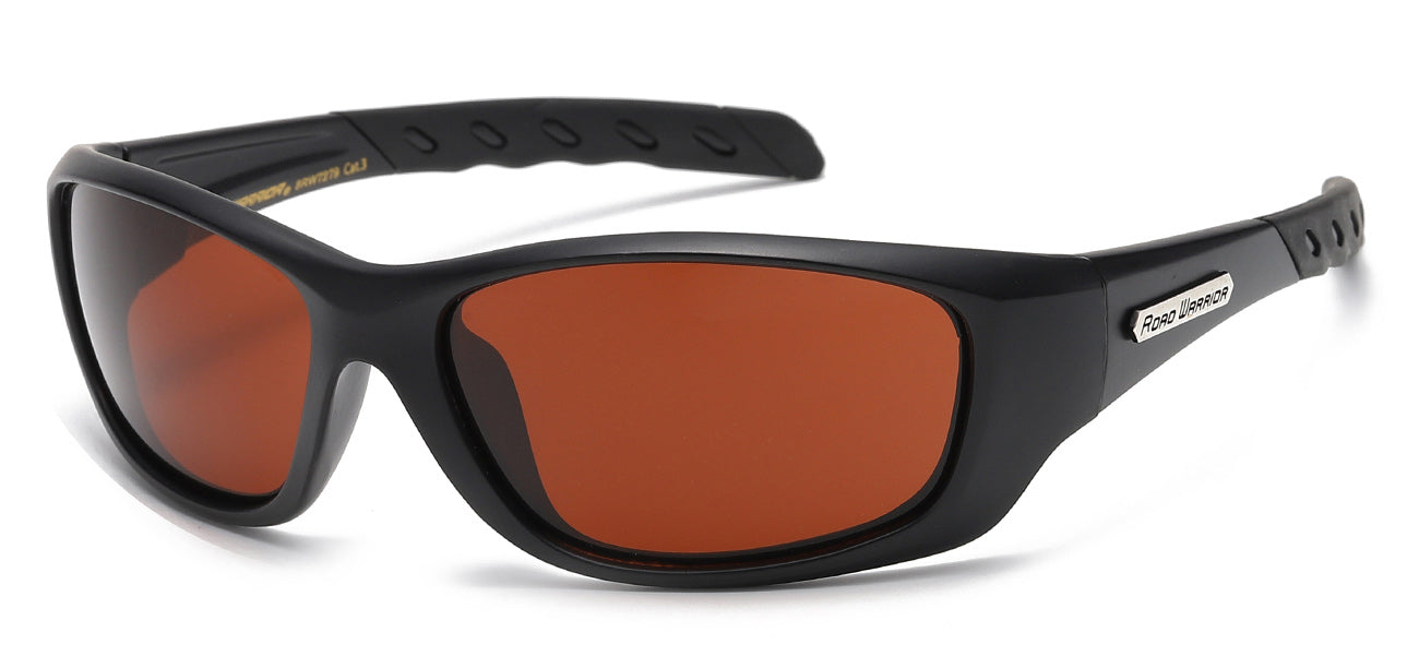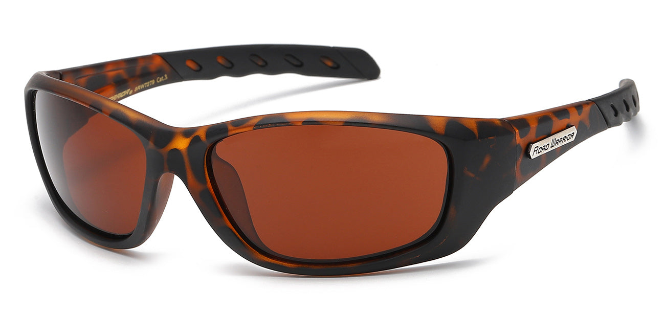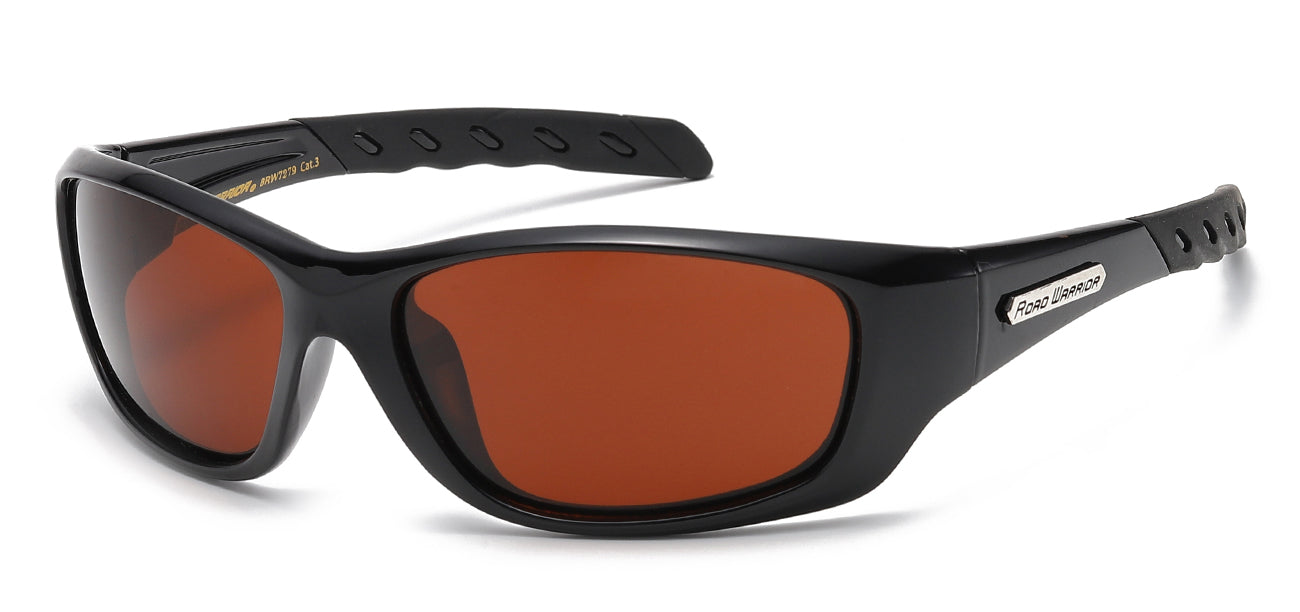 This design utilizes a strong polycarbonate semi rimless frame have a sleek wrap shape. The two lens are securely tension snapped into the frame for a smooth and seamless semi rimless design. The road warrior brand utilizes a brown driving lens to provide better vision for certain driving conditions and personal preferences over yellow driving lens. The lens offers 100 percent UV400 protection.