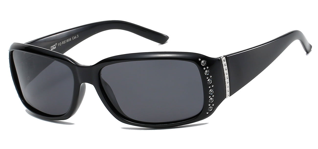 Elegance and sophistication exude in these sunglasses from the women's polarized fashion collection. This style features oval shape lenses with metallic bar clamping the frame and acting as a hinge to the temple. A gold flower accent piece acts as a stylish hinge, connecting the rims to the temples. This style offers polarized lenses with UV protection and anti-glare properties. Fashion and functionality truly combine in these gorgeous pairs. Made for the women with a penchant in fashion, having these in your display will surely attract a larger female following. Sold by the dozen in pre-assorted frames and lenses.