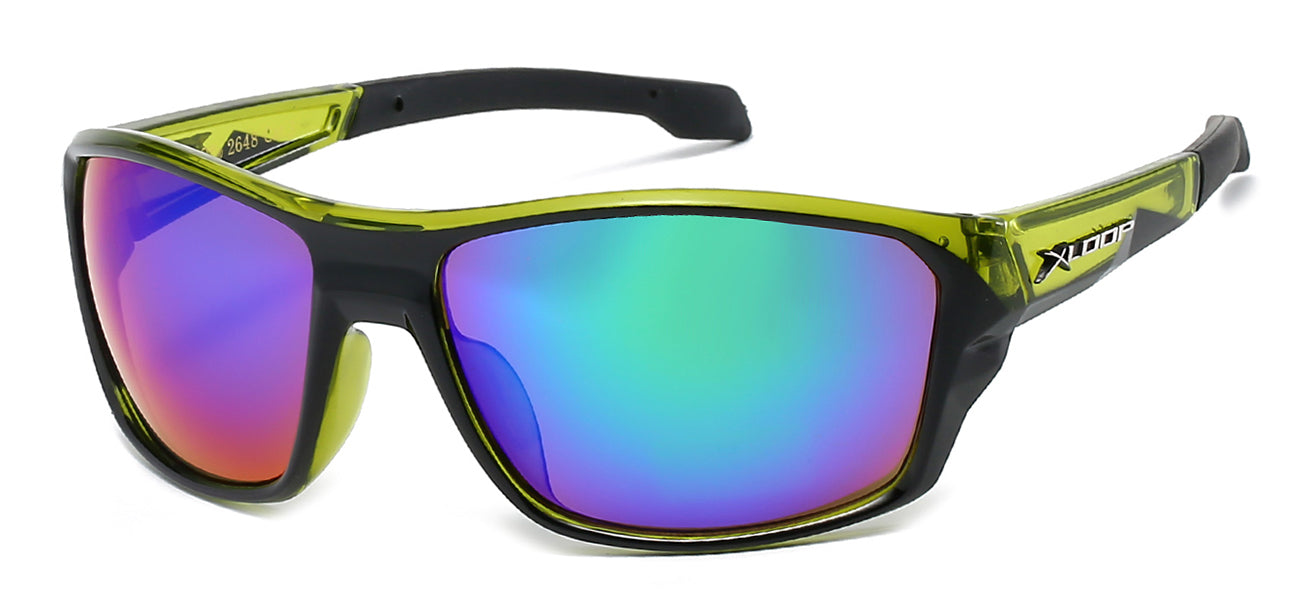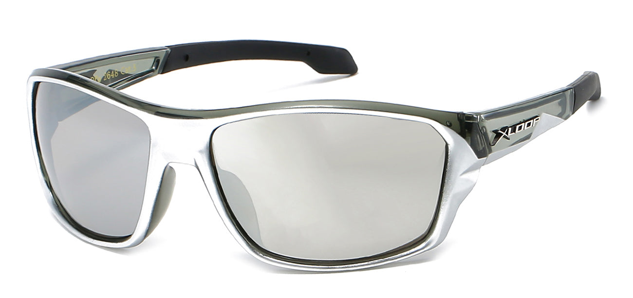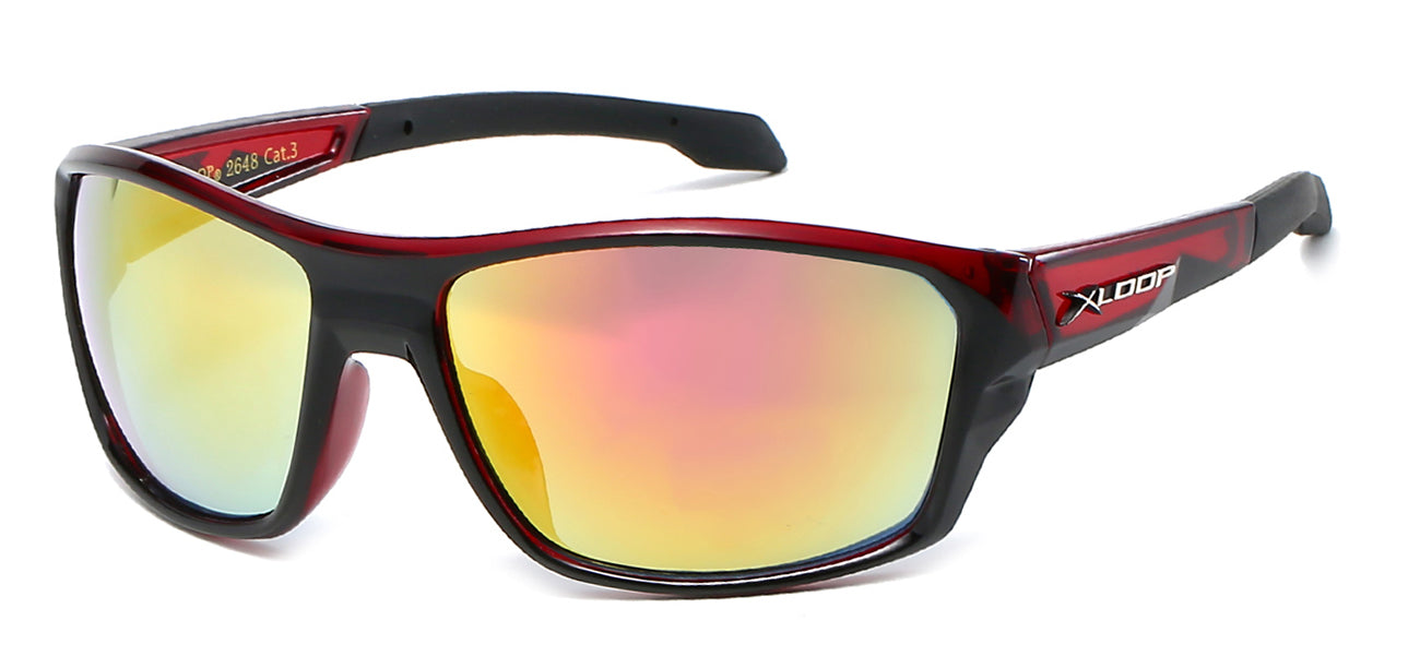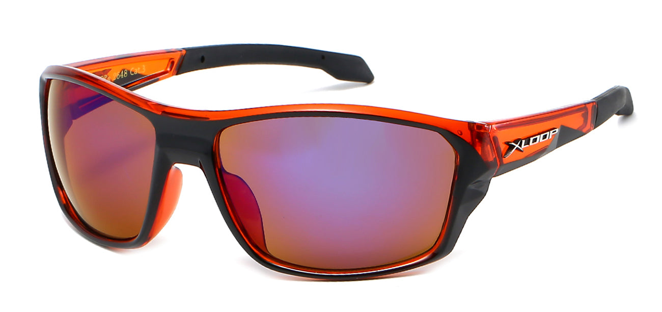 Men will surely look ruggedly handsome in these sports sunglasses from the XLoop collection. The wrap frame features a face fitting contour design and the temple is covered in variation of camo pint. The sturdy rims for that snug fit and mirror coated lenses complete the look of this sporty pair. Offering this style to your male customer base will surely entice your stores following. Sold by the dozen in pre-assorted frames and lenses.
