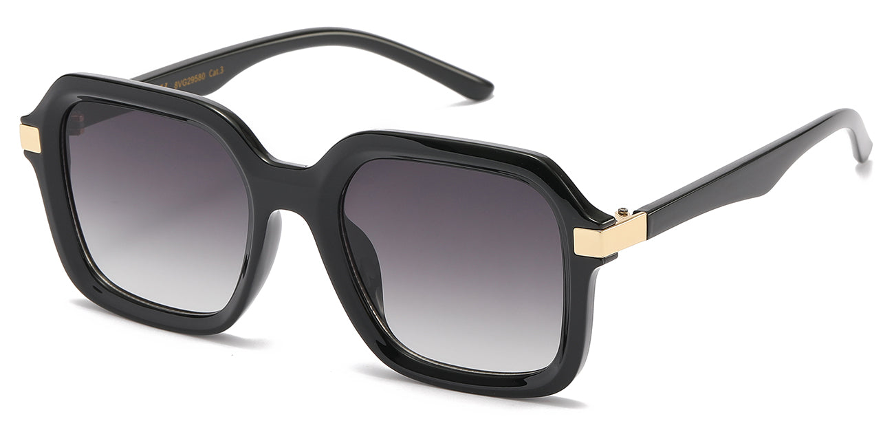 This 8VG29580 design from VG offers a mix of traditional square sunglasses with a contemporary twist. The round, polymer frame & highlighted temple give a classic feel to these stylish shades & they come with regular & gradient lenses. Impact-resistant frames ensure extra durability & these are offered at a discounted bulk price. Make a statement with this combination of classic style & reliable construction, ideal for daily wear. For modern styling with timeless allure, VG 8VG29580 is sure to upgrade any outfit. Offering quality construction & the convenience of multiple lens options, you can't go wrong.