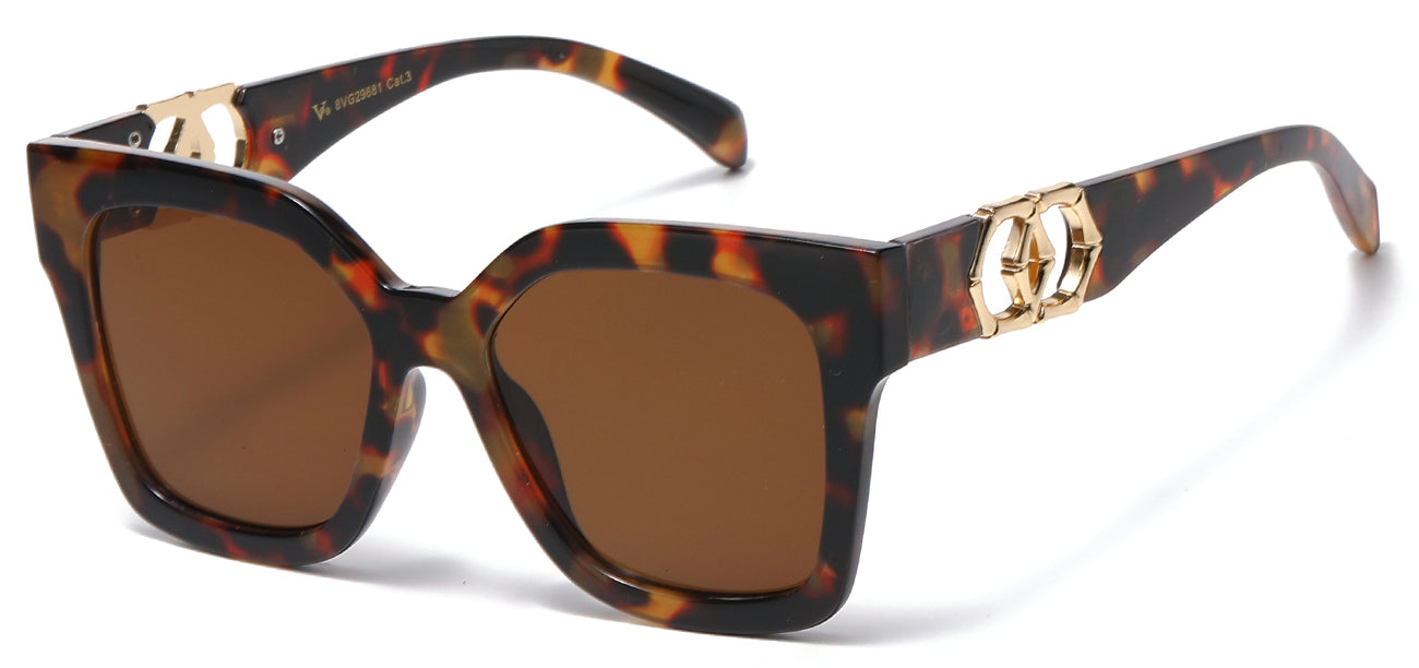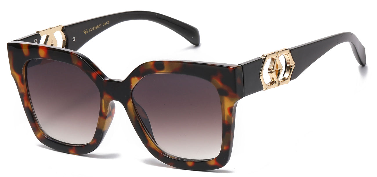 Get ready to unleash your sense of adventure with VG's 8VG29681 designer sunglasses! This top-of-the-line polycarbonate frame seamlessly blends classic and modern elements, while the daring temple accents exude confidence. Choose from our selection of standard or gradient lenses and experience 99.9% protection against harmful UVA/B rays. Don't miss out on our incredible deals at Got Shades and add twelve pairs of these masterfully crafted sunglasses to your collection, symbolizing unlimited creativity and impeccable artistry.