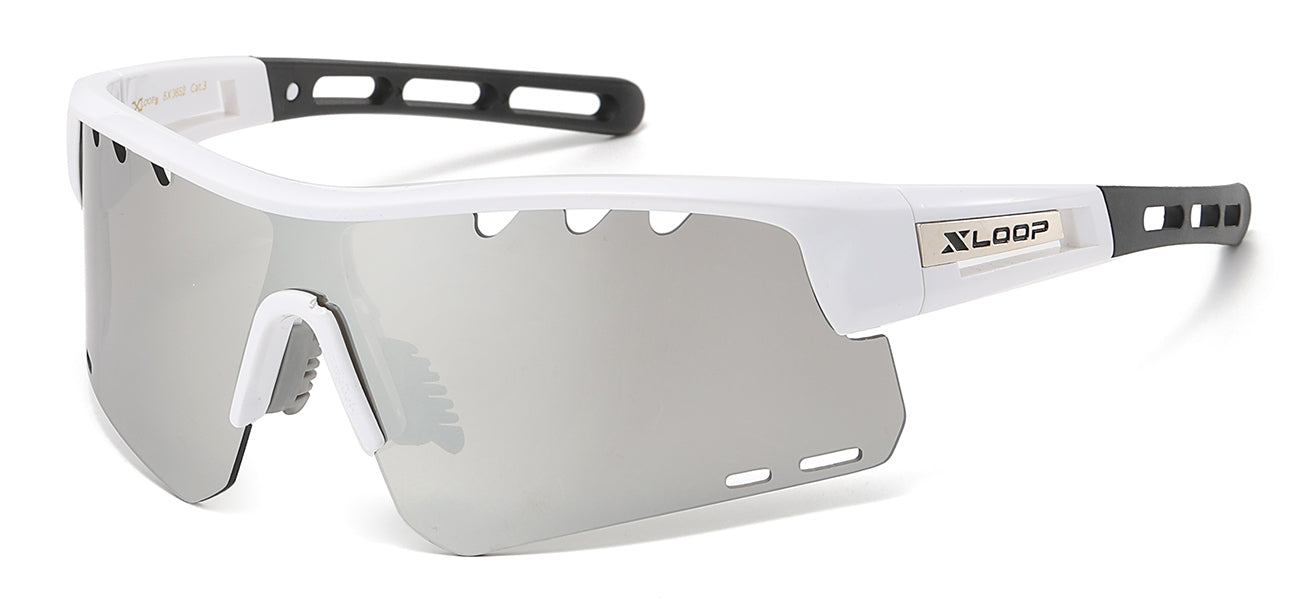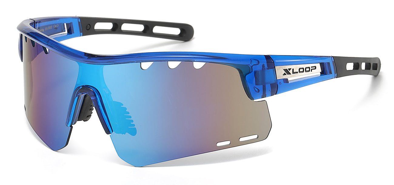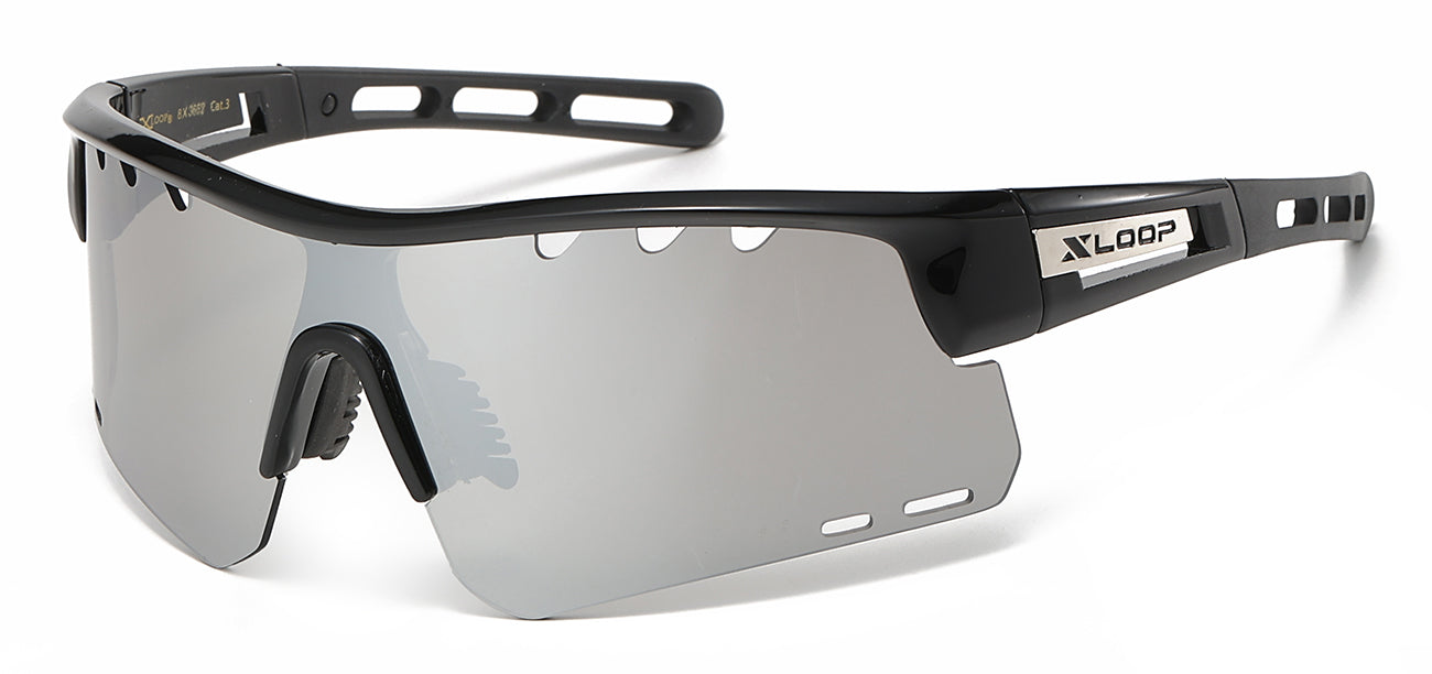 XLoop 8X3652 sunglasses boast stylish, semi-rimless frames with a secure wrap-around design and polycarbonate shield lens. Increase your sales potential with our beautifully branded and produced XLoop display box which can hold up to 12 pairs of glasses. Make a statement with style, safety and security.