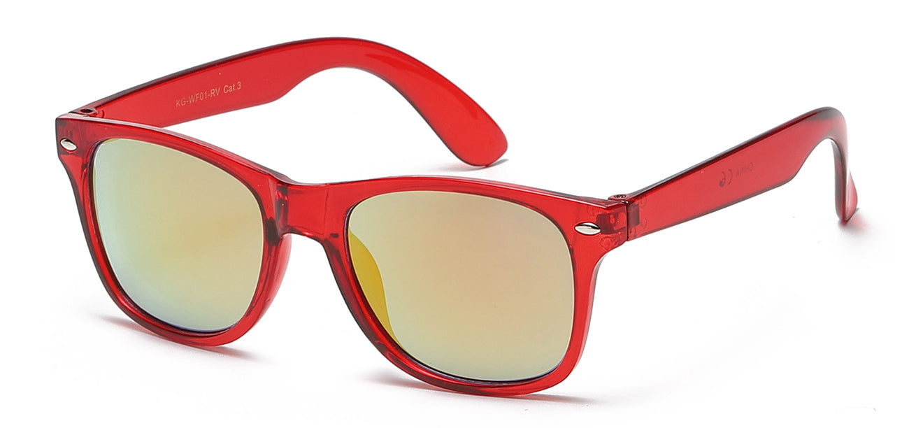 Let children experience what it is like to have high quality and fashionable eyewear with these Kids Retro Rewind sunglasses. Made to fit their little faces flawlessly, this style features the American flag imprinted on the lenses. Fun and quirky, these will surely capture their fancies. Expand your business by targeting the huge children’s market with these cute sunglasses. With the popularity of the radical shape style, offering these in your store will prove to be a wise investment. These frames come with no logo and are sold by the dozen.