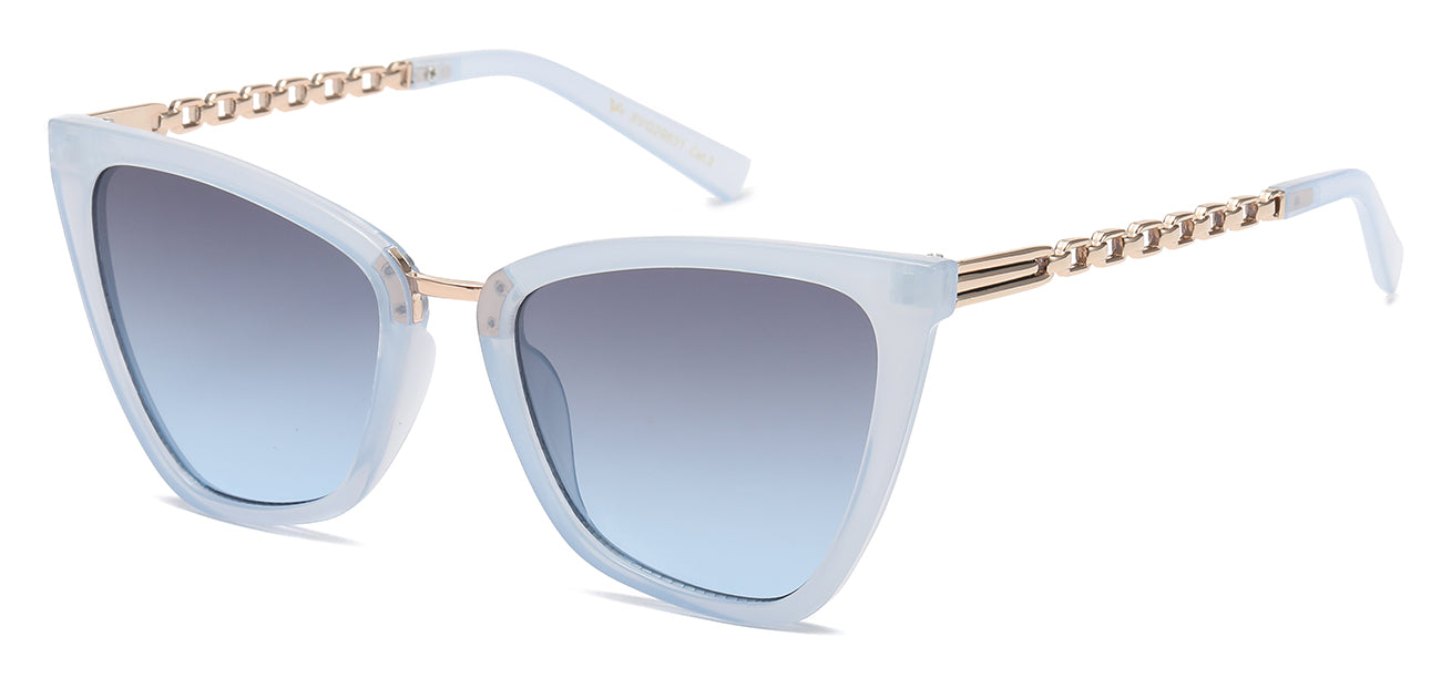 Elevate your look with VG's 8VG29631 sunglasses. The exquisite cateye/butterfly design combines classic and contemporary elements, showcasing a sleek polycarbonate frame and bold temples that exude confidence. Expertly-crafted lenses provide exceptional 99.9% protection against UVA/B rays and come in standard or gradient options. Experience discounted prices for a sophisticated and stylish selection.
