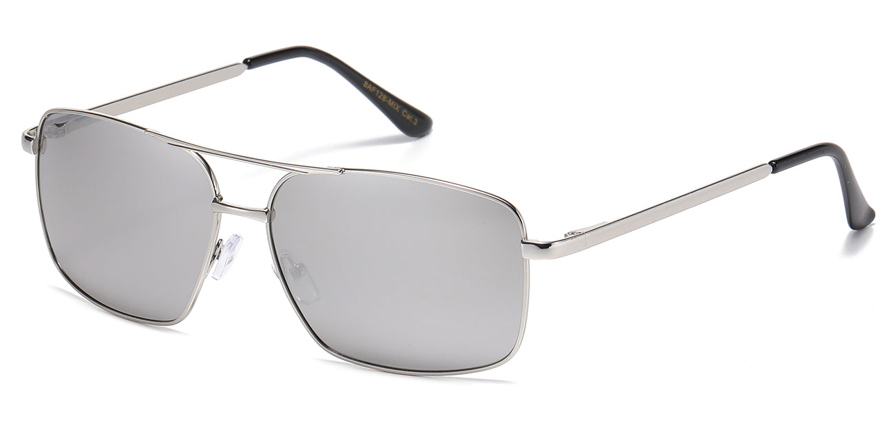 Elevate your style with the Air Force 8AF128 sunglasses, featuring a selection of vivid pre-assorted mirror lenses that offer 99.9% UVA/B protection. Made with a classic and refined design, these sunglasses have a sleek metallic frame and high-quality polycarbonate lenses for exceptional durability. Discerning customers will admire the luxurious feel and elevated style of these meticulously crafted sunglasses, constructed with the finest materials and utmost attention to detail. Achieve a bold, fashion-forward look with these sunglasses, perfect for any occasion.