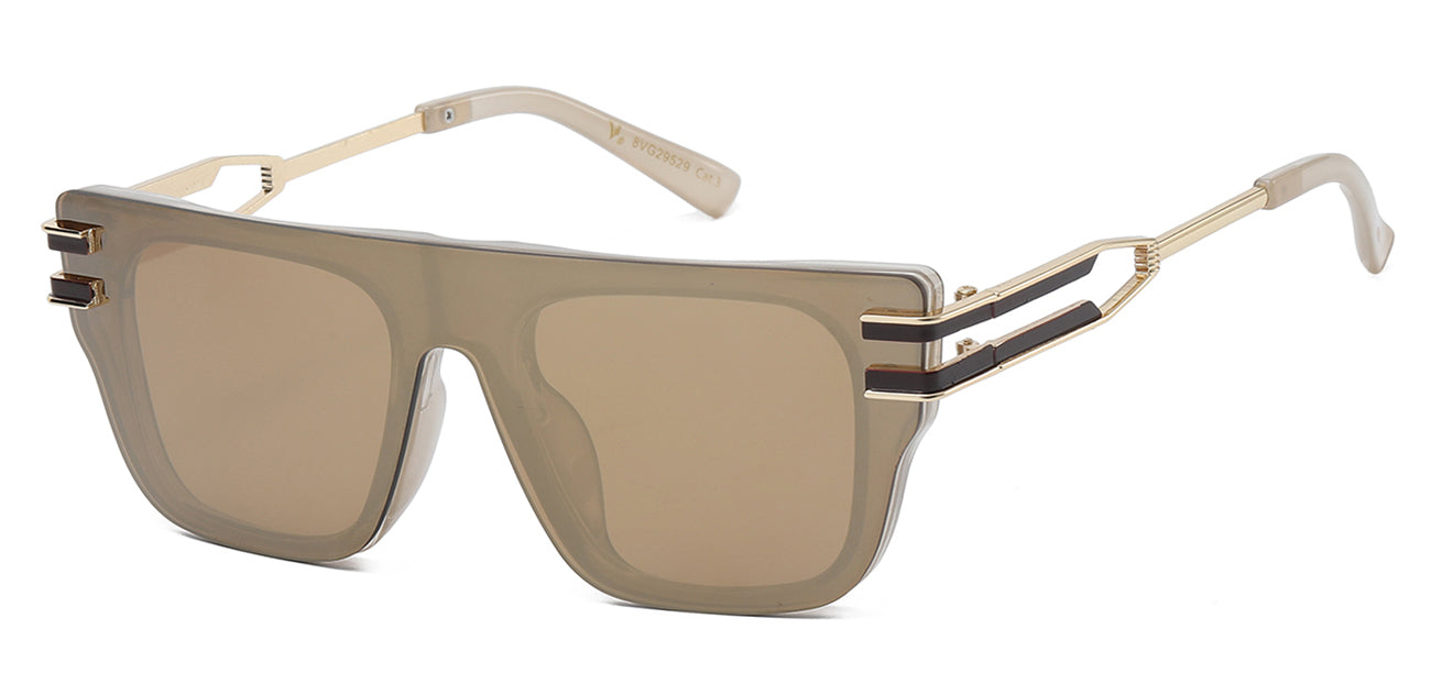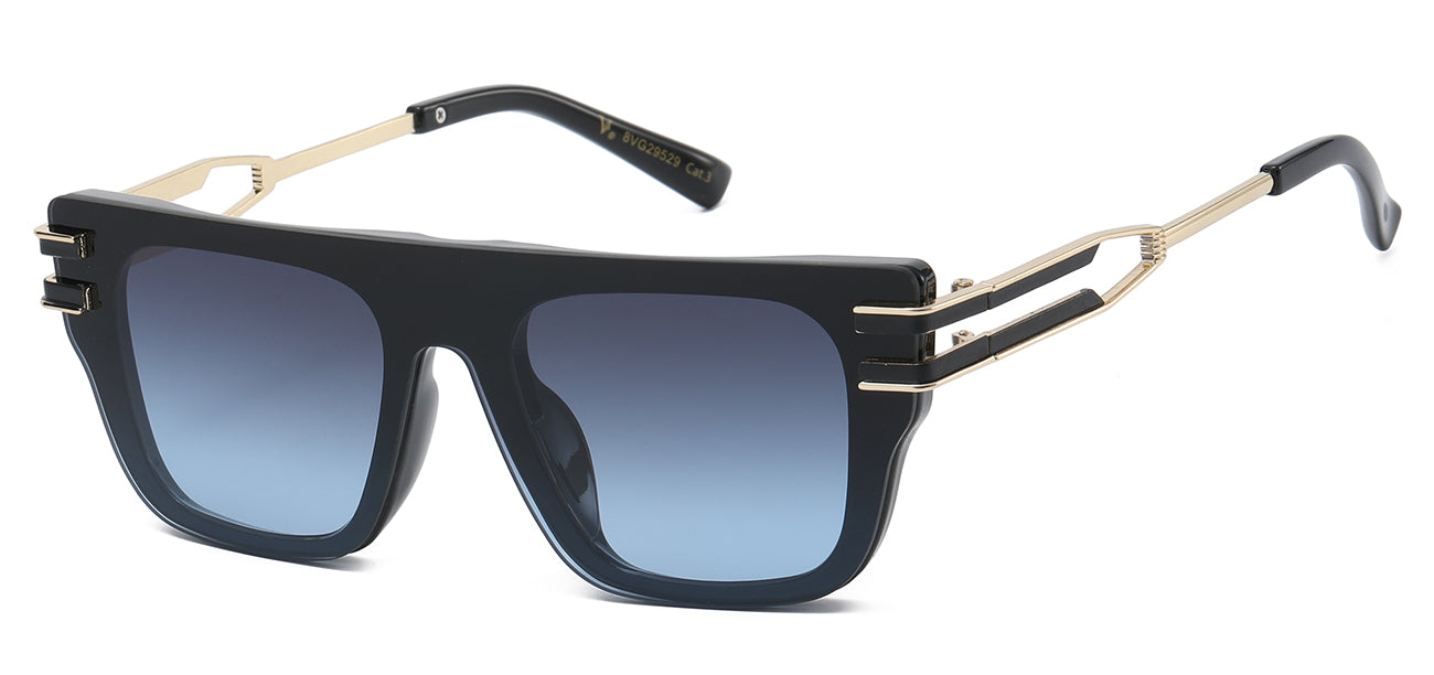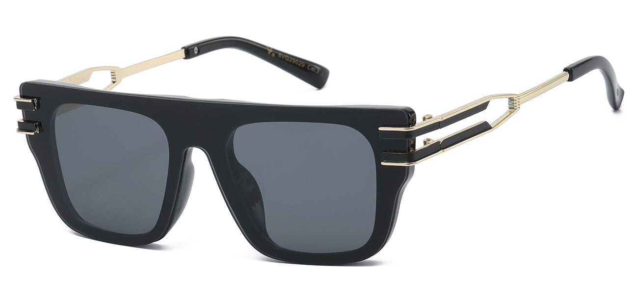 The traditional square soho sunglasses gets a chic and posh look with these contemporary updated cue from the fashion collection of the VG product line. The rectangular metal frame and accented temple adds a touch of elegance to these fashionable sunglasses. Featuring regular lens and smooth gradient lenses in each dozen, these styles are sold by the dozens at low, wholesale prices.