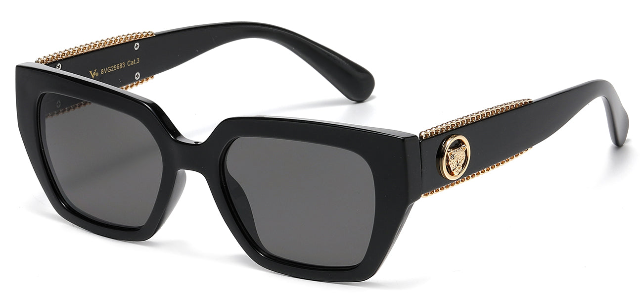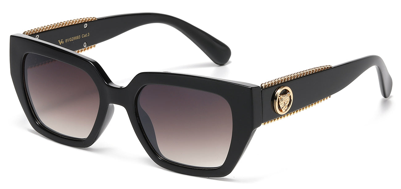 Indulge in your daring side with the designer sunglasses 8VG29683 from VG. This innovative polycarbonate frame seamlessly blends traditional and contemporary elements, while the bold temple details exude a sense of adventure. Opt for either standard or gradient lenses for exceptional 99.9% UVA/B protection. Don't miss out on our incredible deals at Got Shades and receive twelve pairs of unparalleled creativity and exquisite craftsmanship!