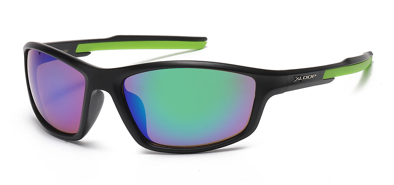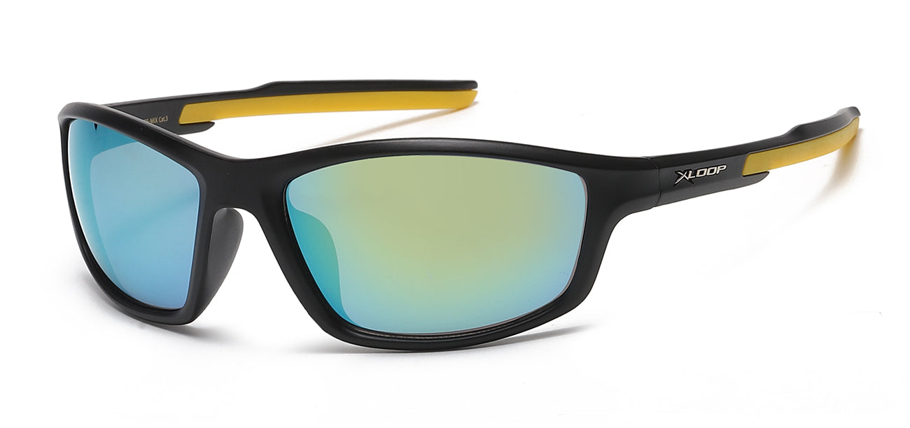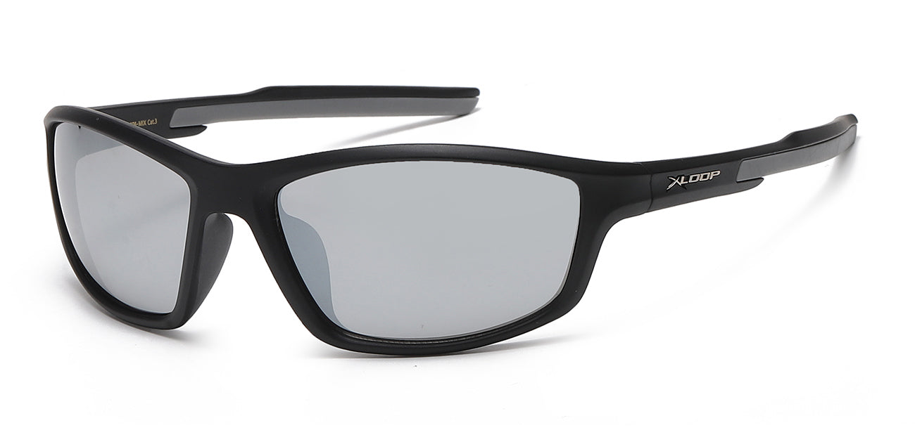 Elevate your eyewear collection with the XLoop 8X2758-MIX, a refined sports sunglasses option designed for the discerning man. The sophisticated wrap-around silhouette features a precision-contoured frame that adapts seamlessly to facial geometry, while the distinctive camo-patterned temples add understated character. Engineered with durable polycarbonate construction and mirror-coated lenses, these shades deliver comprehensive UVA/B protection with an air of effortless style. Reinforced rims ensure a secure, comfortable fit during any activity. A versatile addition to any men's eyewear lineup. Available by the dozen in pre-assorted frame and lens configurations.